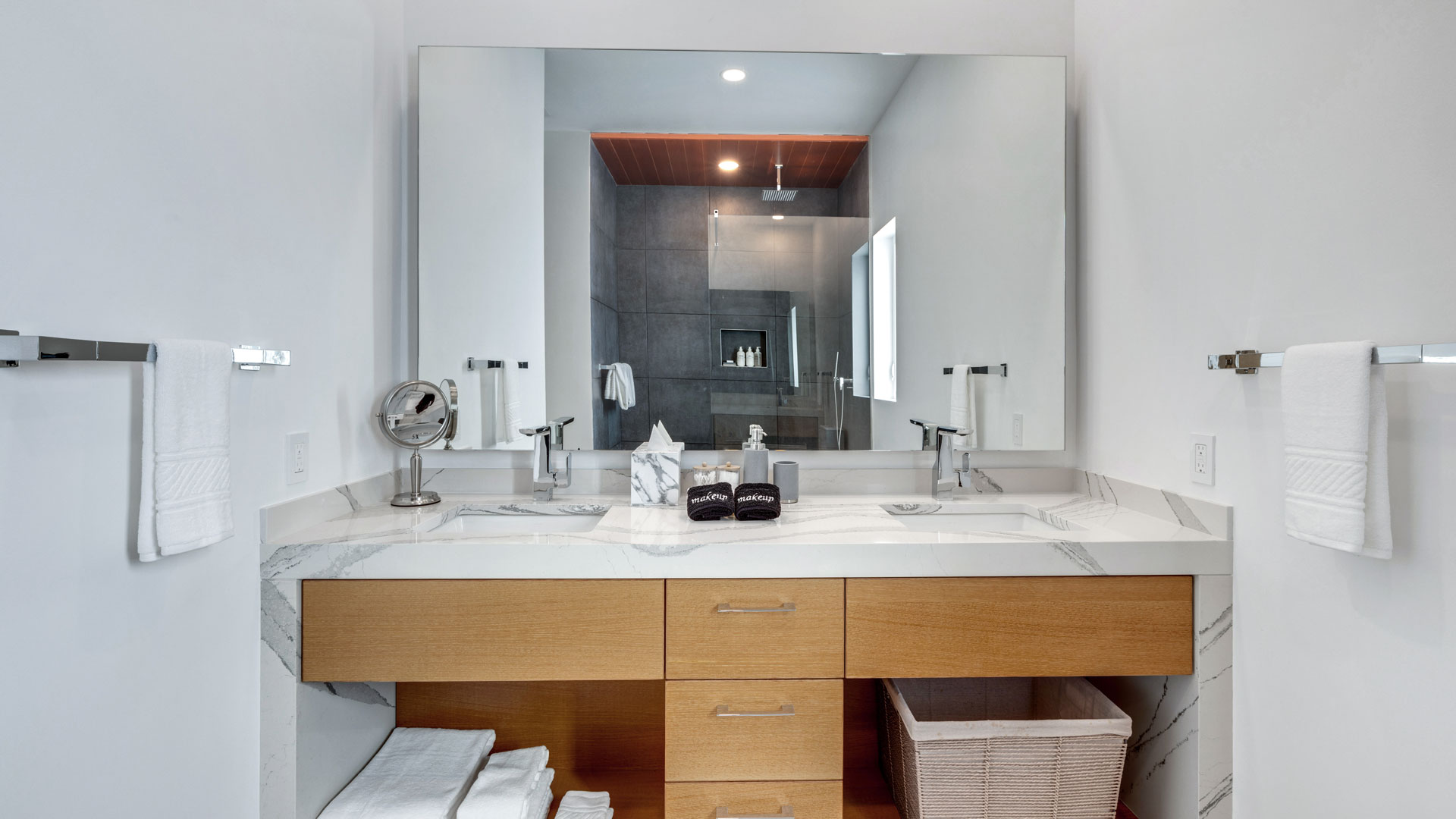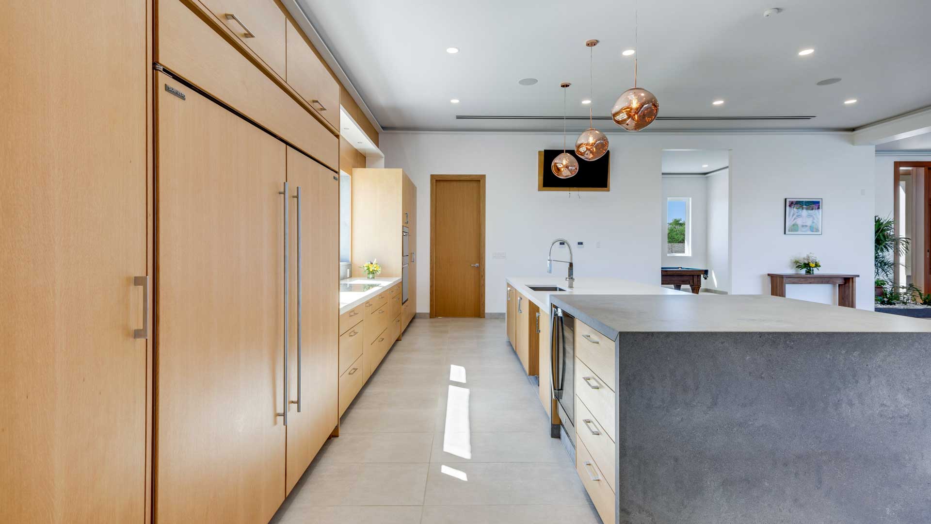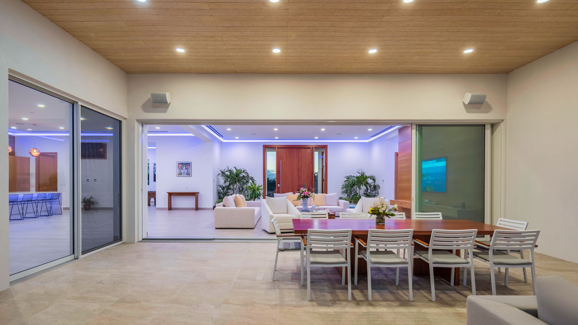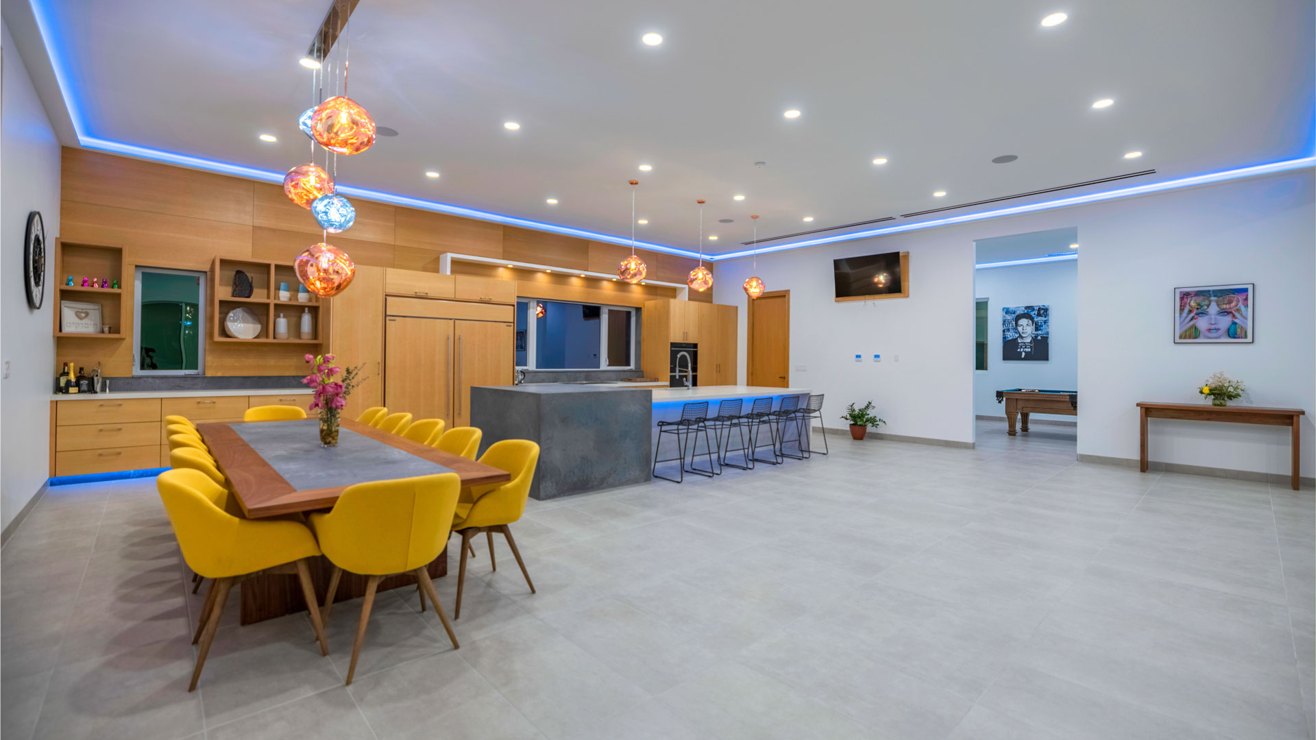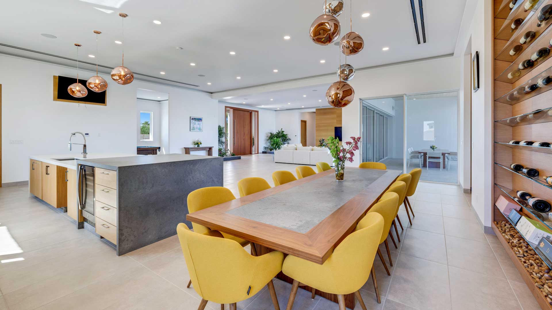 Inside, the neutral and ultra-spacious interior, adorned with custom white oak millwork, is accented with lush green indoor planting. Contemporary artwork, vibrant lighting, and splashes of color create a playful and sophisticated aesthetic. Additional amenities include a games room with a pool table and a well-equipped fitness suite, both showcasing unsurpassed views of the Sound.