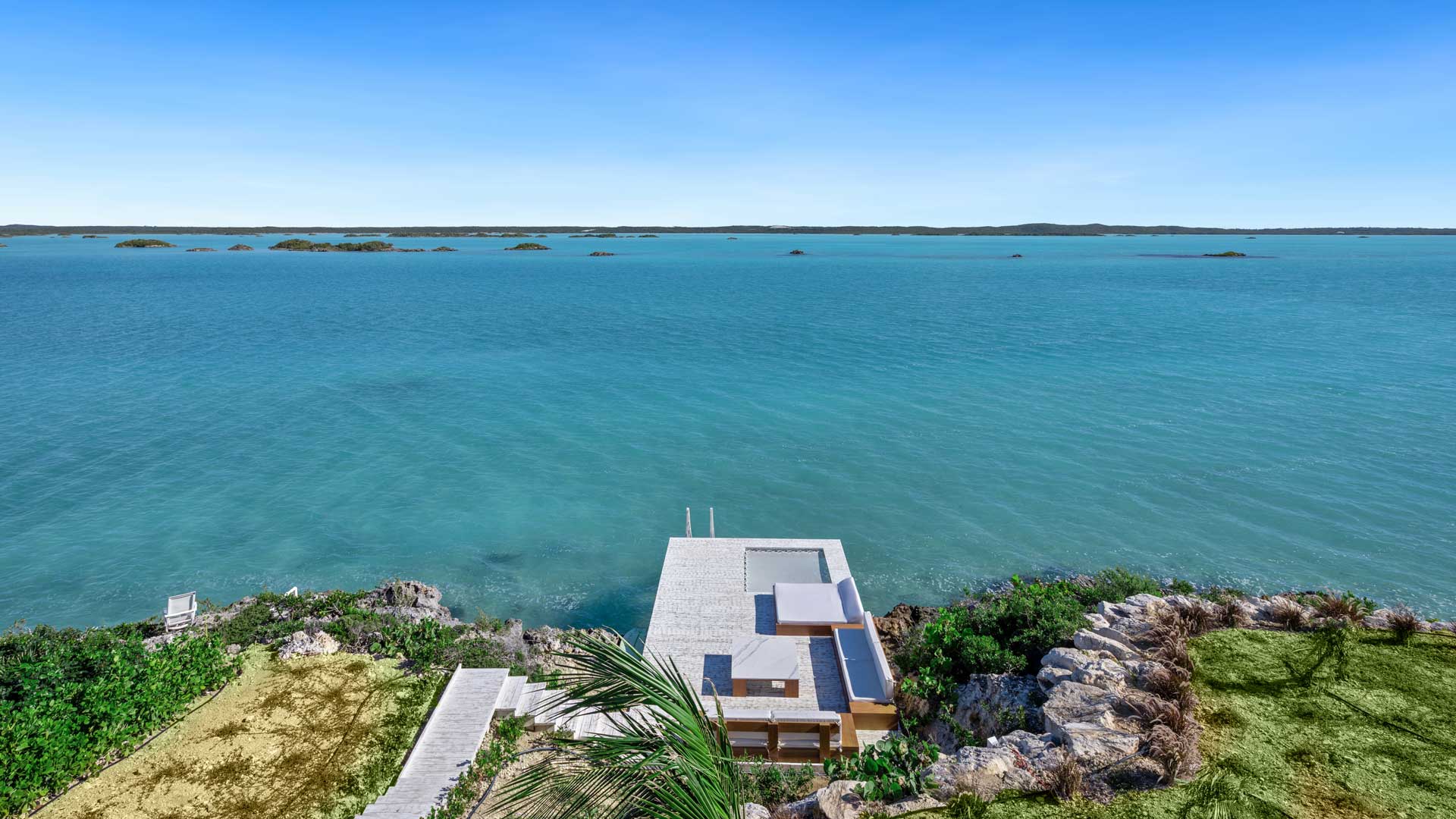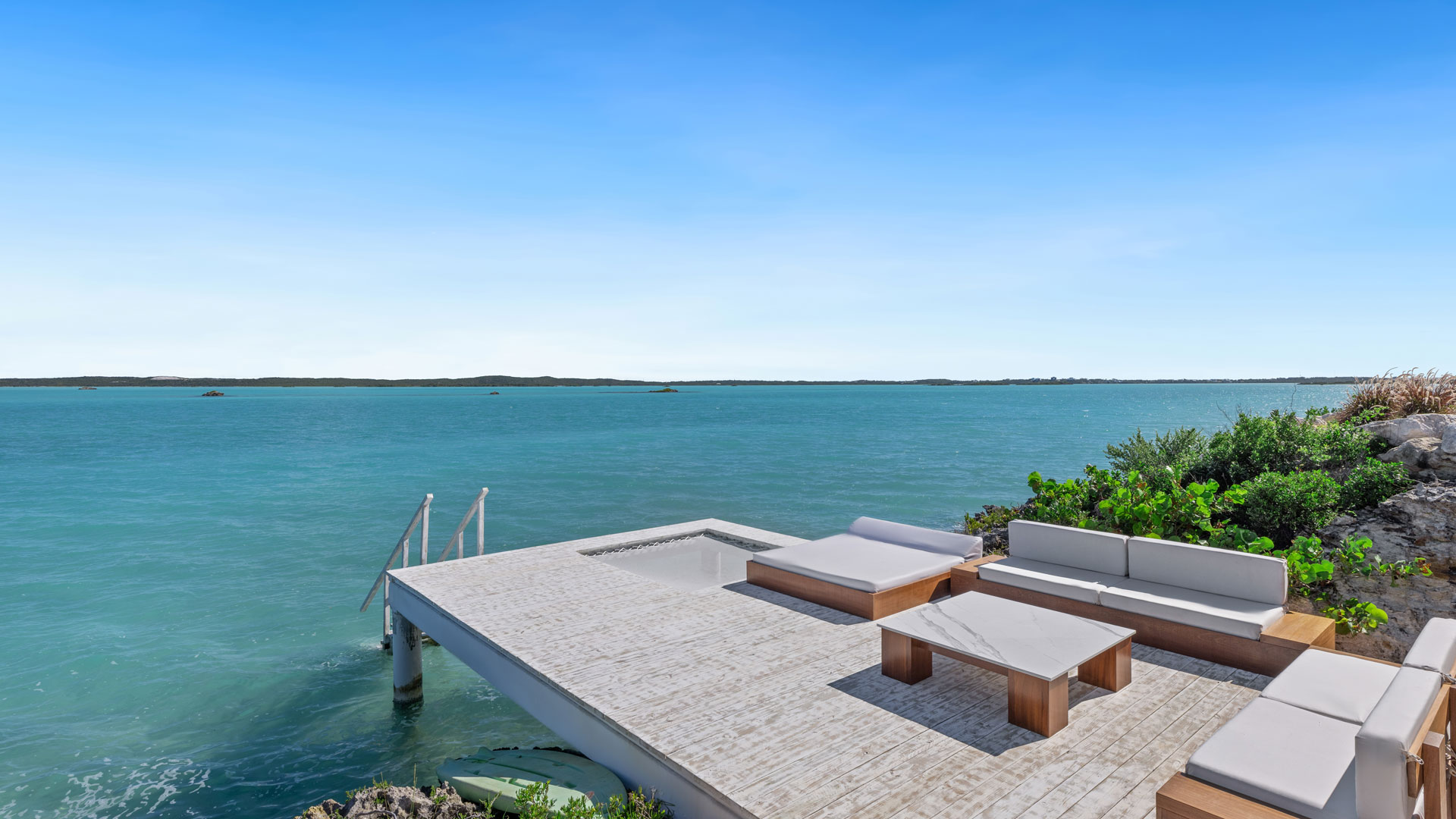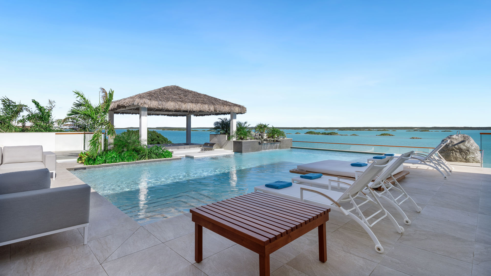 The amenity-rich villa exudes personality and impeccable design credentials. Features include an expansive poolside terrace with a bar and BBQ, offering relaxed seating and lounging areas on multiple levels designed to maximize panoramic views of the national park. A waterside platform provides direct access to the warm azure waters below, perfect for swimming, kayaking, and paddleboarding.