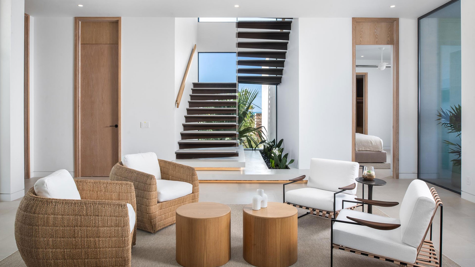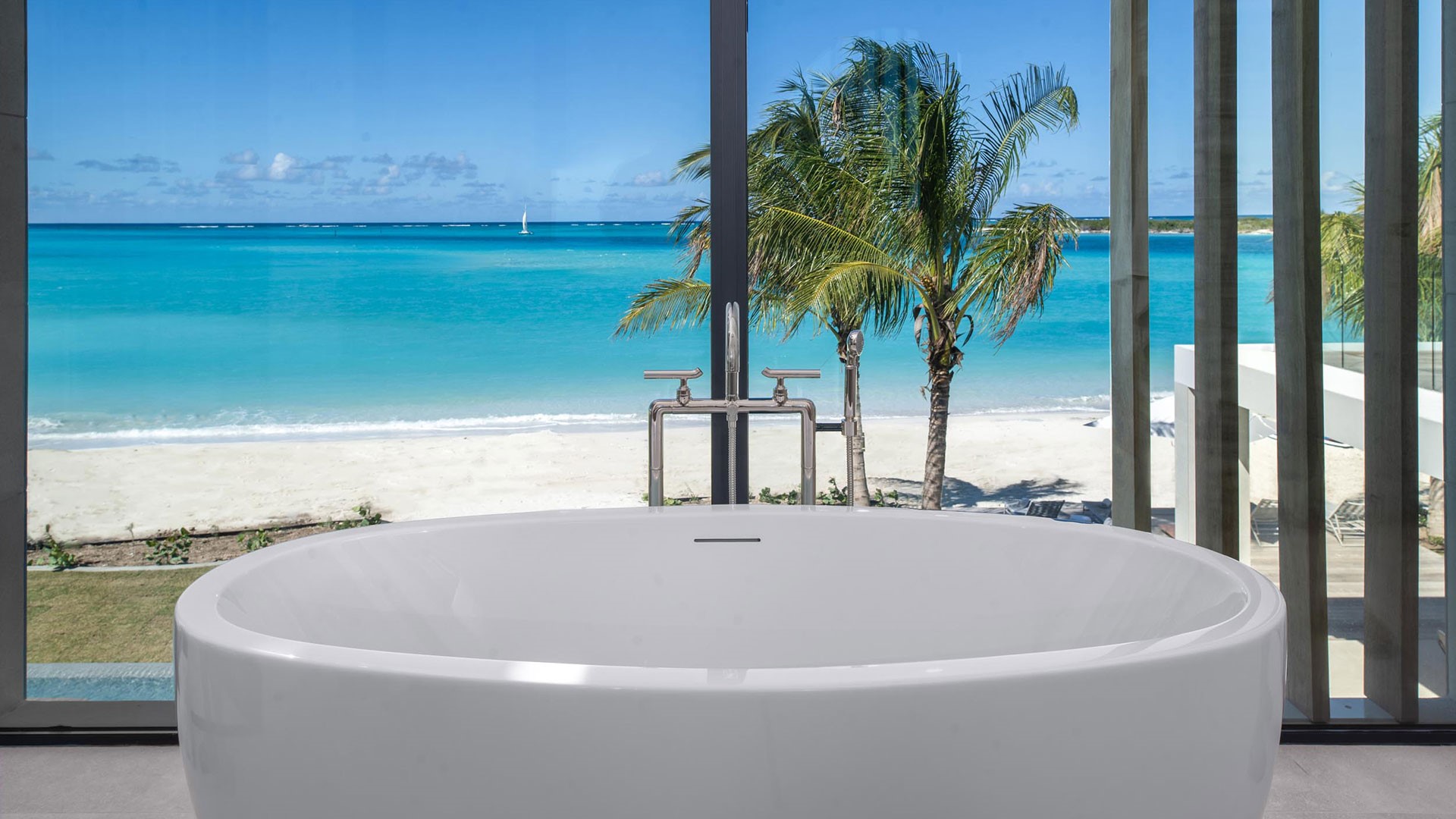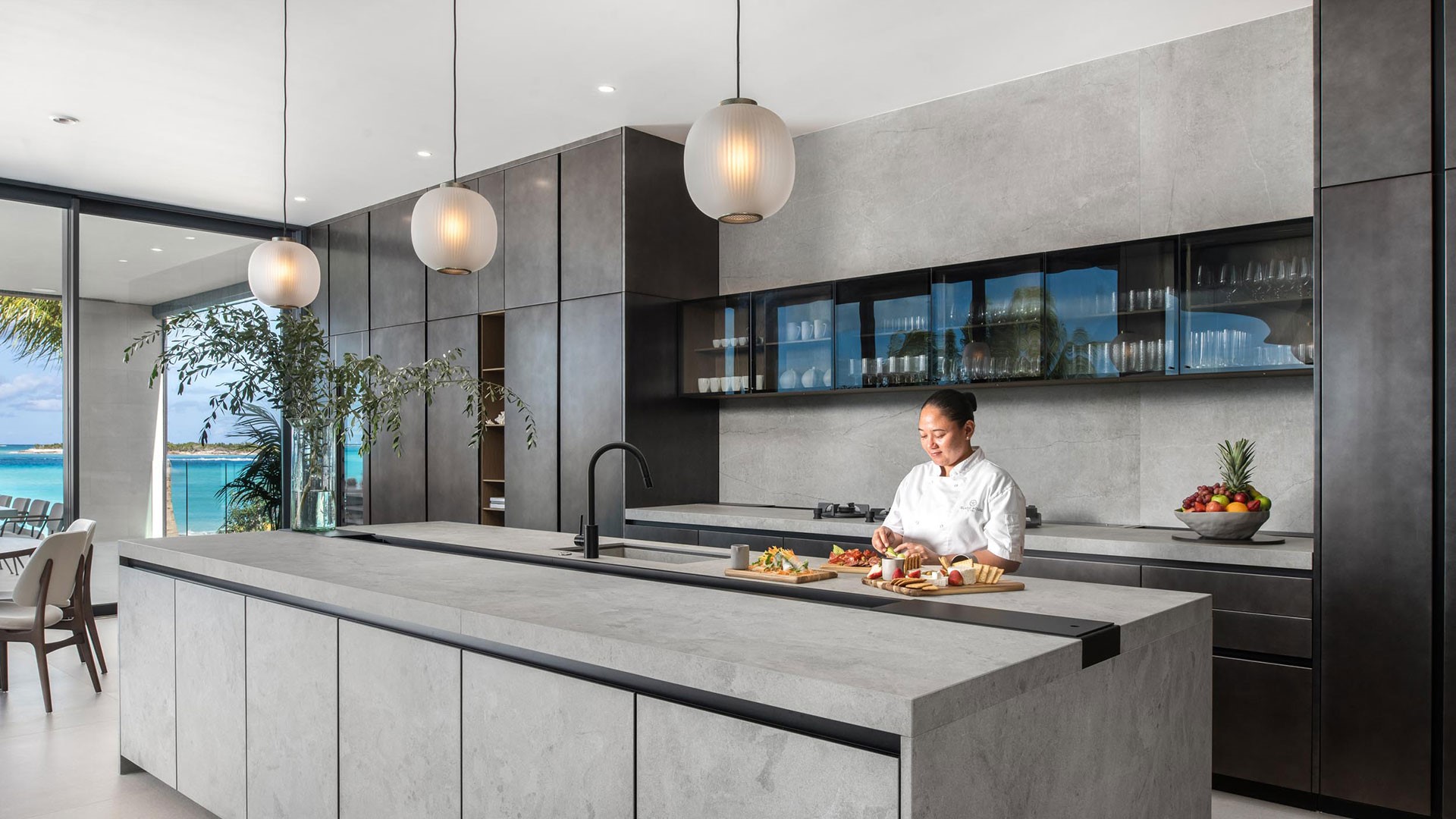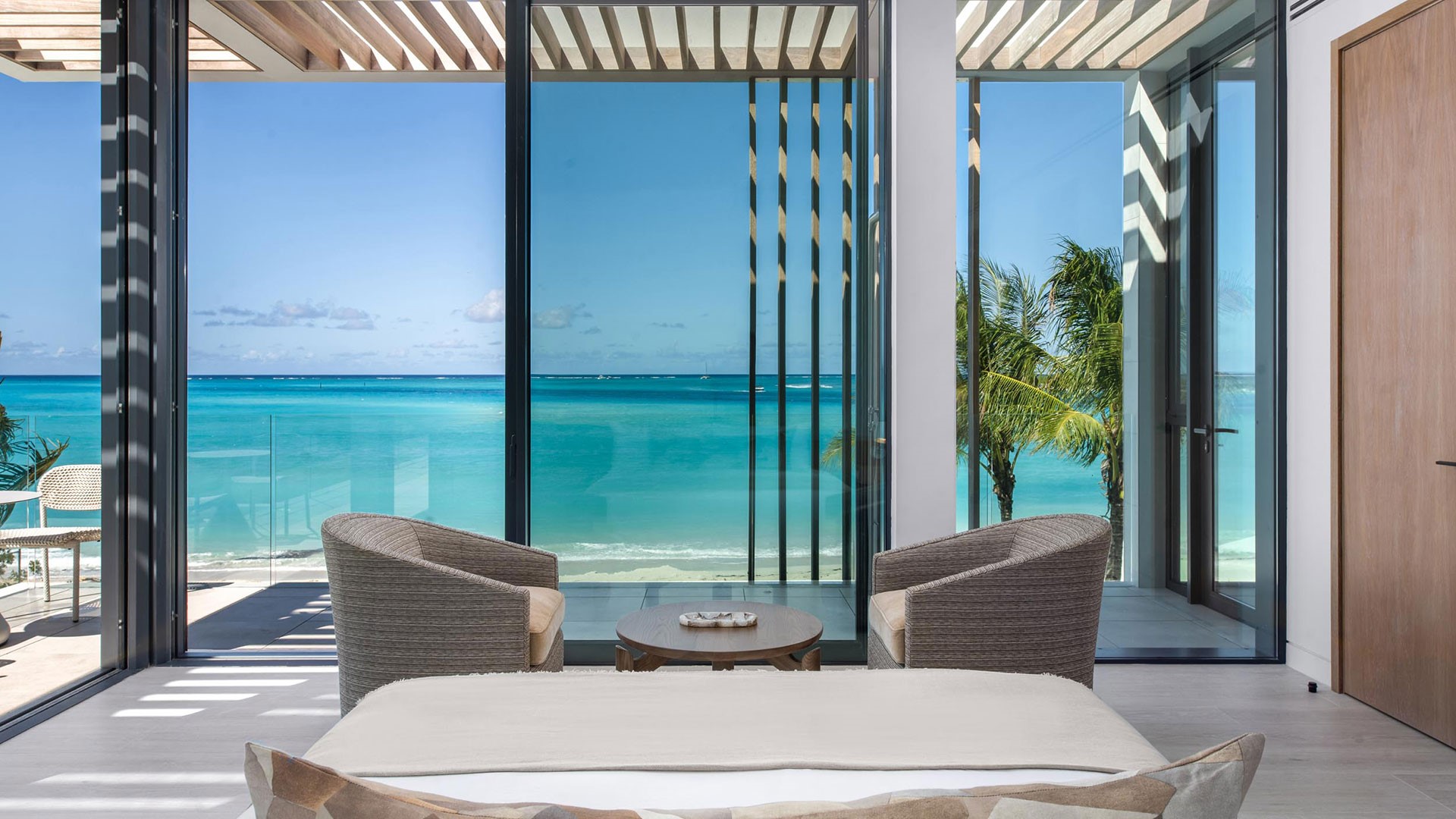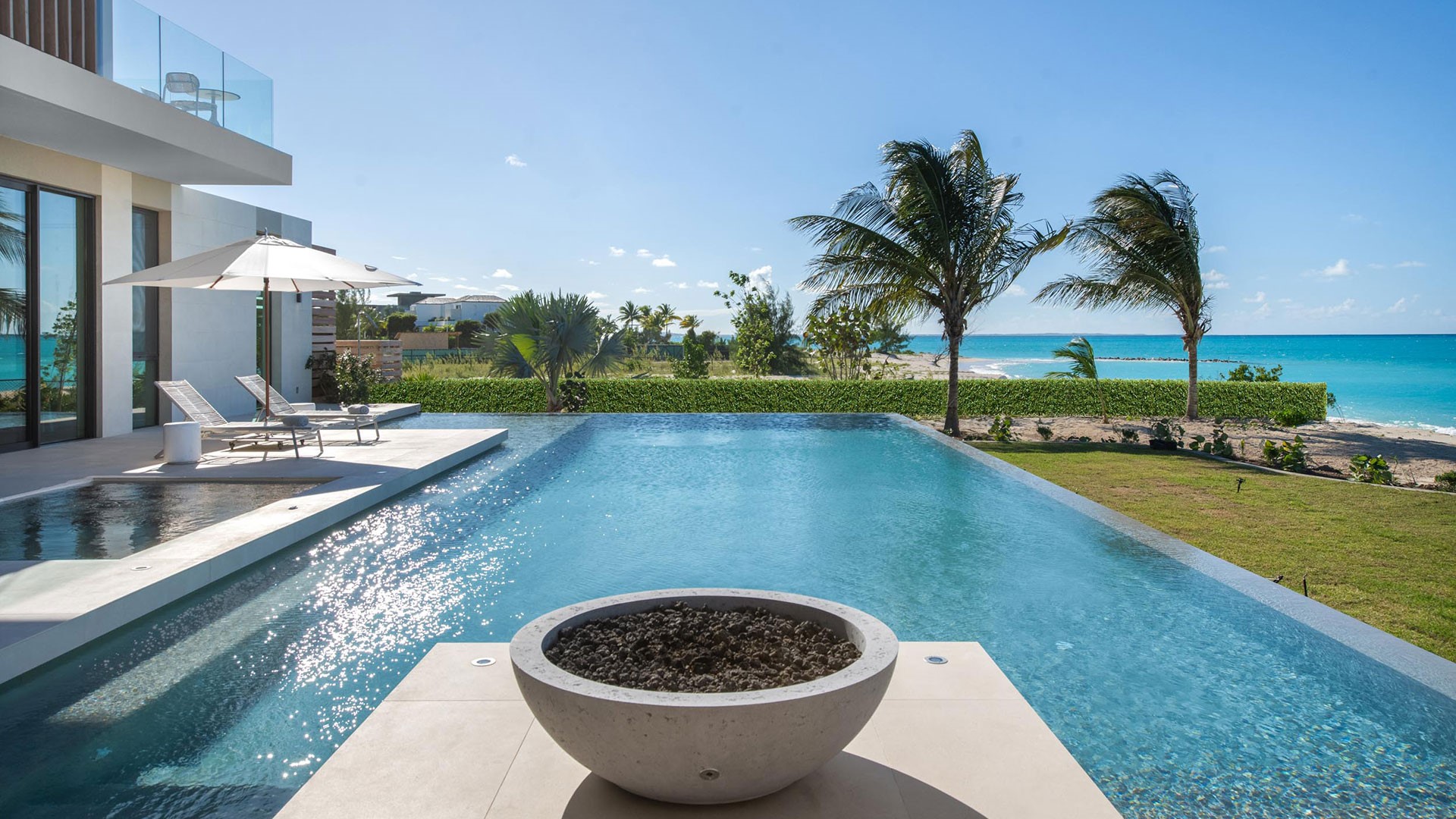 Artisanal decor, incorporating opulent wood, marble, glass, and leather finishes in soothing neutral shades, creates an immaculate and inviting ambiance. The property offers wraparound views that are unparalleled, complemented by a hot tub, direct beach access, and an expansive infinity pool — one of the largest on the islands.