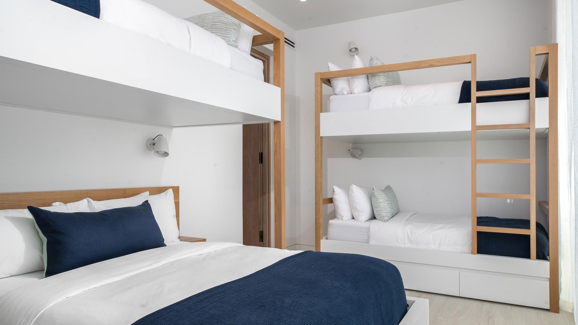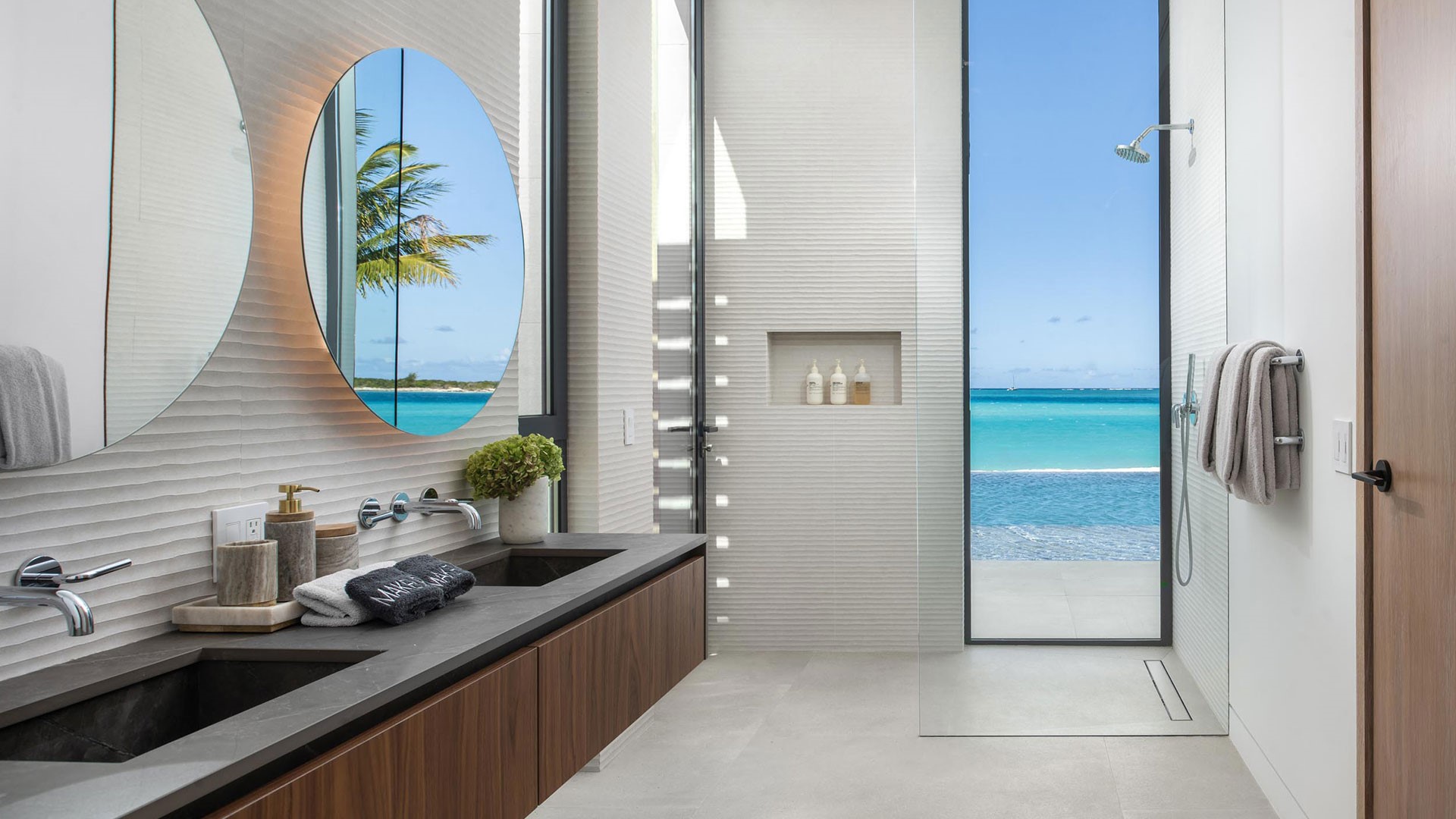 The Point welcomes up to 16 guests with its eight bedrooms, each adorned with luxurious finishes and featuring ensuite bathrooms for the utmost comfort. Additionally, the property includes a convenient half bath for guests’ use. The open-plan layout bathes the interiors in natural sunlight, providing uninterrupted views of the glimmering shoreline, rustling palms, and the picturesque surroundings.